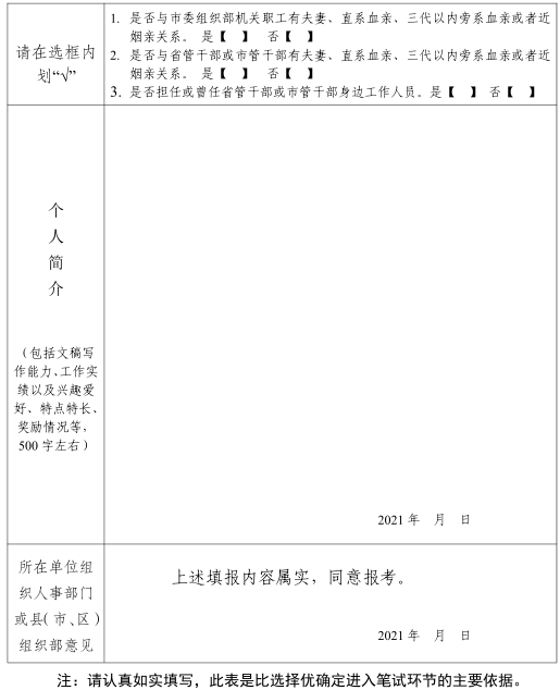 附件:市委組織部2021年度公開考調工作人員報名表